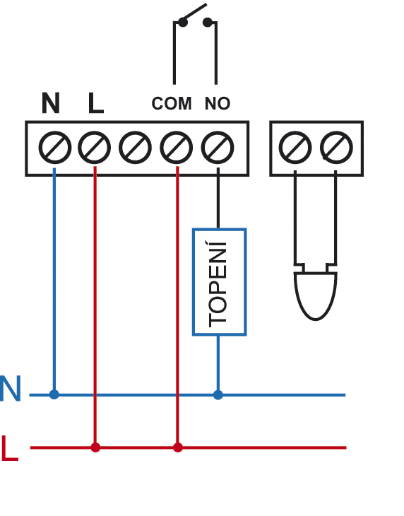 3) kombinovaně (obě čidla) - vnitřní čidlo snímá teplotu v místnosti a vnější hlídá maximální teplotu podlahy; požadujeme komfortní teplotu v místnosti, ale zároveň hlídáme teplotu podlahy (vhodné pro dřevěné a laminátové podlahy).