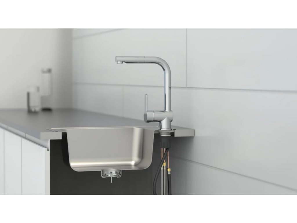 - kuchyňská baterie s otočným výtokem o 360°C, ideální pro dvoj dřezy