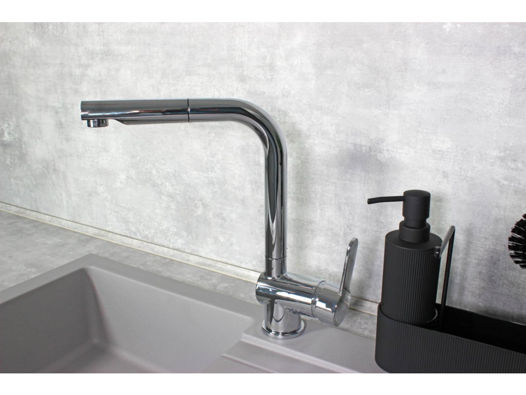 - kuchyňská baterie s otočným výtokem o 360°C, ideální pro dvoj dřezy