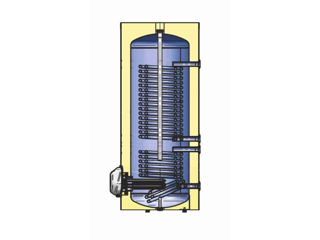 EURO 500 D2 je stacionární, na zem montovaný ohřívač vody o objemu 500 litrů. Ohřívač má zabudované elektrické topné těleso o příkonu 9 kW a je vybaven dvěma topnými výměníky s větší výměníkovou plochou pro připojení externího zdroje teplé vody, např. tepelného čerpadla, kotle ústředního vytápění nebo solárního systému. Vodu lze ohřívat elektřinou (elektrickou spirálou) nebo jiným zdrojem tepla připojeným ke dvěma výměníkům - tepelným čerpadlem, lokálním ústředním topením, solárním systémem. Elektrická cívka je instalována na přírubě ve spodní části ohřívače. Při ohřevu vody pomocí elektrické spirály můžete nastavit požadovanou teplotu vody pomocí termostatu na ovládacím panelu. Vnitřní nádrž ohřívače a topný výměník jsou vyrobeny z vysoce kvalitní oceli a jsou chráněny speciální povrchovou úpravou přímým smaltem (sklokeramický smalt s přídavkem zirkonu). Smaltovaná nádrž a výměník jsou chráněny proti korozi dvojitou anodovou ochranou - v nádrži jsou instalovány dvě anodové tyče ze slitiny hořčíku, které snižují účinky koroze a prodlužují životnost nádrže. Ve střední části nádrže je umístěn cirkulační otvor pro připojení cirkulace. Nádrž má dva otvory pro přídavné džbery pro ovládání řídicího systému (komunikační čidla termostatu). Hlavní výhody a vlastnosti: Vysoký výkon, rychlý ohřev vody Zvětšená plocha dvou výměníků pro připojení tepelného čerpadla a jiného zdroje vytápění. Energetická třída B Vysoce kvalitní ocelová nádrž a topný výměník chráněné zirkoniovým smaltem Bezfreonová polyuretanová izolace s vysokou hustotou, tloušťka 85 mm Nízké tepelné ztráty a nízké provozní náklady díky silné izolaci Otvory pro komunikační čidla pro termostat externího zdroje Bezpečnost - jedinečná šestistupňová ochrana Dvojitá anodová ochrana nádrže - 2 hořčíkové anody Termostat pro elektrický ohřev - rozsah 10 - 75 °C Nastavení režimu ECO Tepelná pojistka proti přehřátí Ukazatel teploty Vodotěsný vypínač s indikátorem probíhajícího ohřevu Kovový 3/4" pojistný ventil se zpětnou klapkou, který je součástí dodávky Prodloužená pětiletá záruka na nádrž ohřívače Technický listDoplňkové parametry