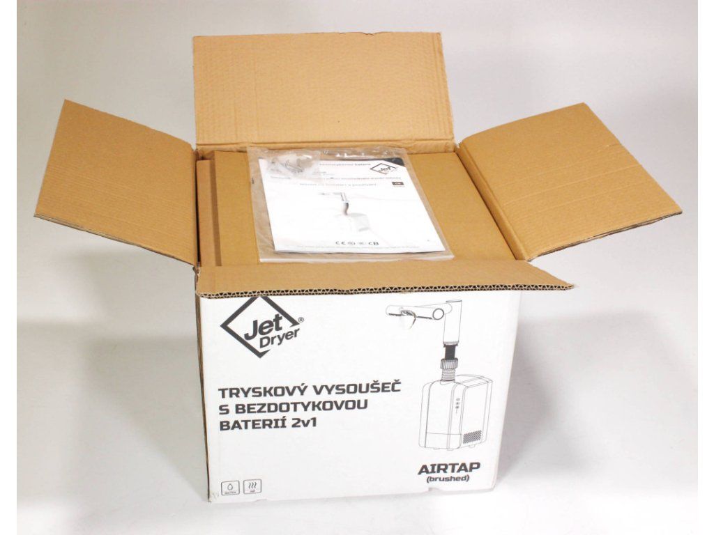 Vysoušeč Jet Dryer AIRTAP je kromě ochrany proti zkratu a přetížení vybaven také funkcí auto stop. V případě příliš dlouhého provozu se automaticky vypne. Vysoušení je vypnuto po 45 sekundách nepřetržitého provozu.