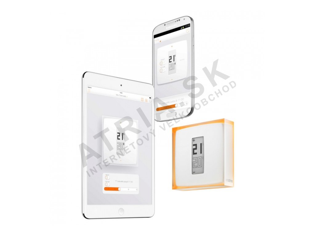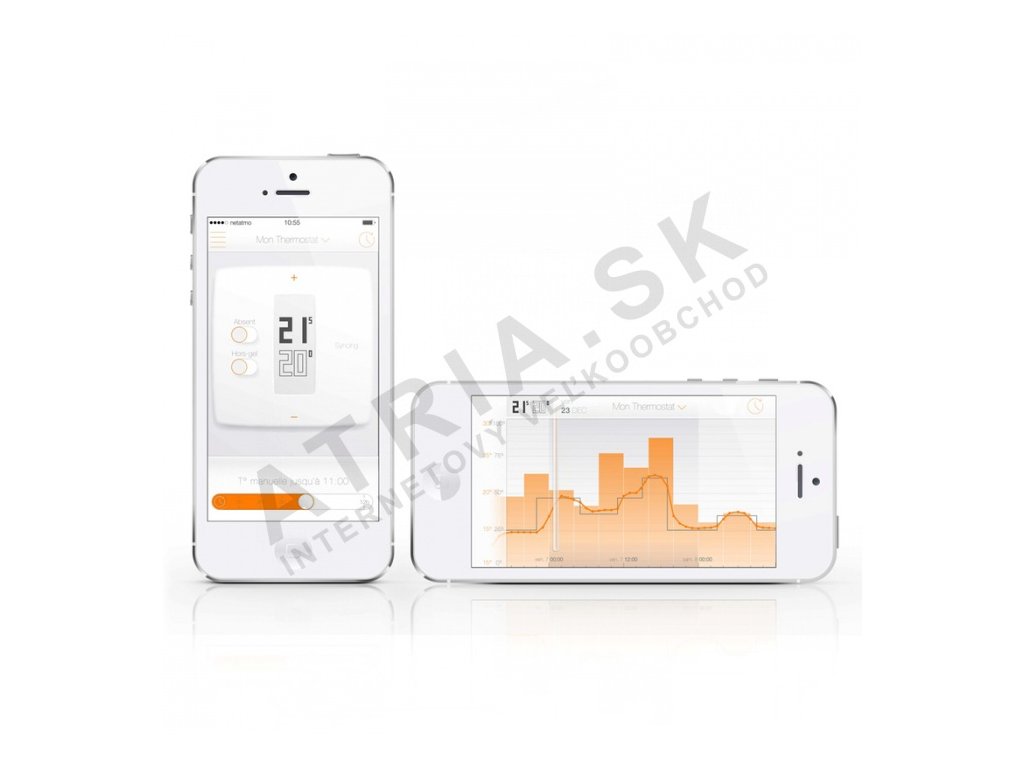 Vďaka bezplatnej aplikácii „Thermostat by Netatmo“ môžete nastaviť teplotu na diaľku aj keď ste na opačnom konci sveta! Použitím Wi-Fi spojenia sa termostat synchronizuje s aplikáciou a permanentne vysiela najnovšie údaje. Naviac je rozhranie termostatu jednoduché, intuitívne a efektívne.