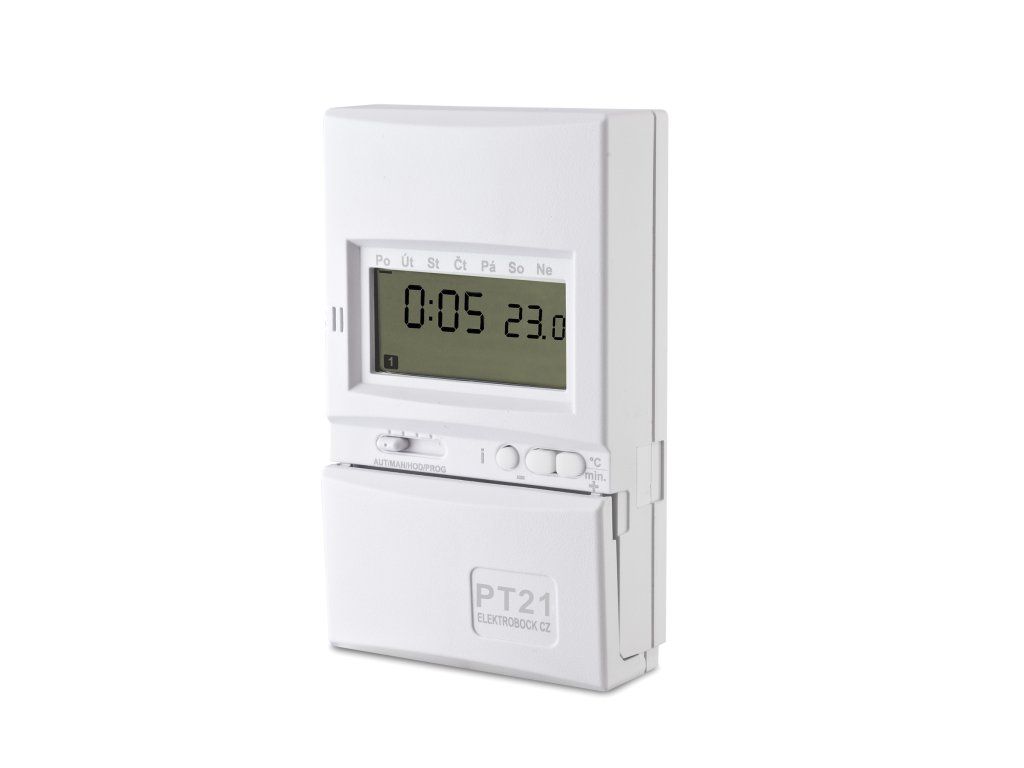 je nástupcem termostatu PT20 (výroba ukončena). Je navržen tak, aby splňoval vysoký standard na požadované funkce, a aby byla zachována jednoduchá obsluha tohoto přístroje. Použitím digitálního termostatu můžete podstatně ušetřit energii potřebnou pro topení, při zachování optimální tepelné pohody. Vzhledem k velkým možnostem programu (až 6 časových úseků a teplot na každý den) si můžete ideálně navolit program, který Vám bude vyhovovat.